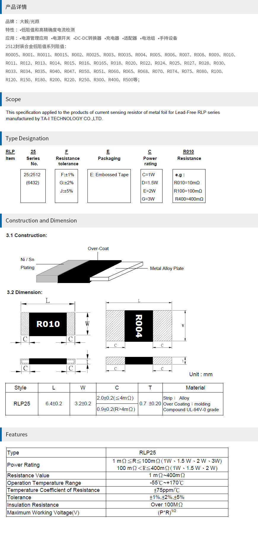 2512(6.4mm*3.2mm)體積合金系列(0.001R、0.002R、0.003R、0.004R、0.005R、0.006R、0.007R、0.008R、0.01R,0.011R,0.012R,0.015R,0.018R,0.02R,0.022R、0.025R、0.03R、0.04R、0.05R、0.06R,0.075R,0.0015R,0.0011R,0.0005R,0.1R等)