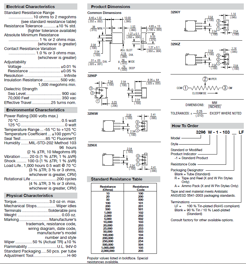 常見的3296系列可調(diào)電阻型號有3296W、3296P、3296X、3296Z、3296Y等多種.