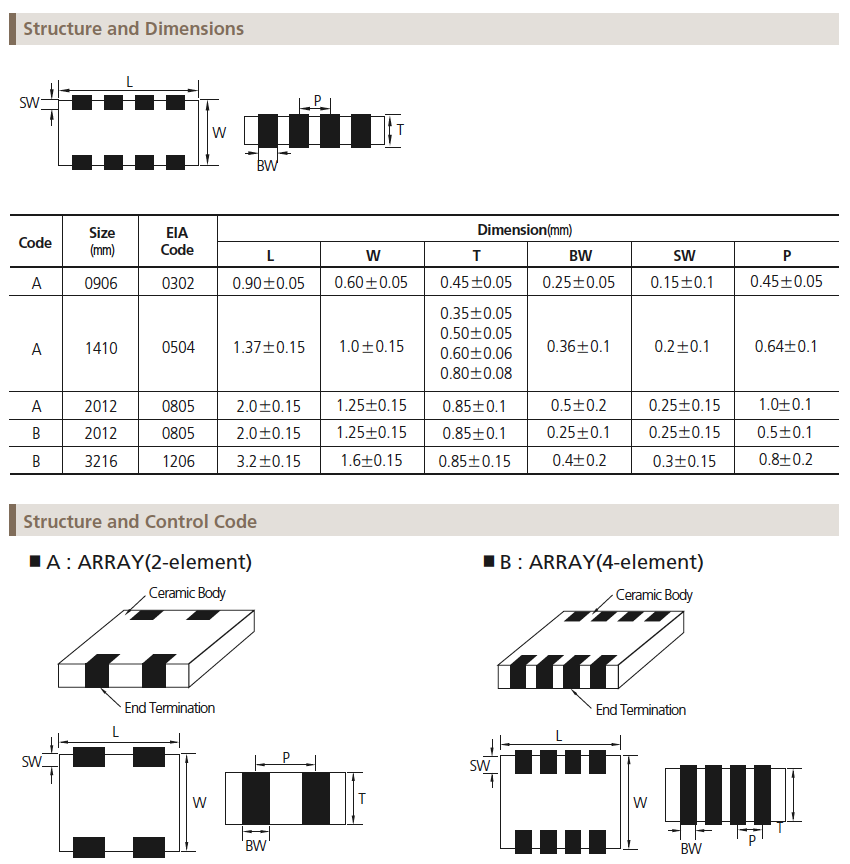 Provide more capacitance per volumetric area: Efficiently use the side margins and thickness. Promoting mounting efficiency. One chip of CA equals to four chips of 0603 type capacitor. So it can reduce times of picking and placing.