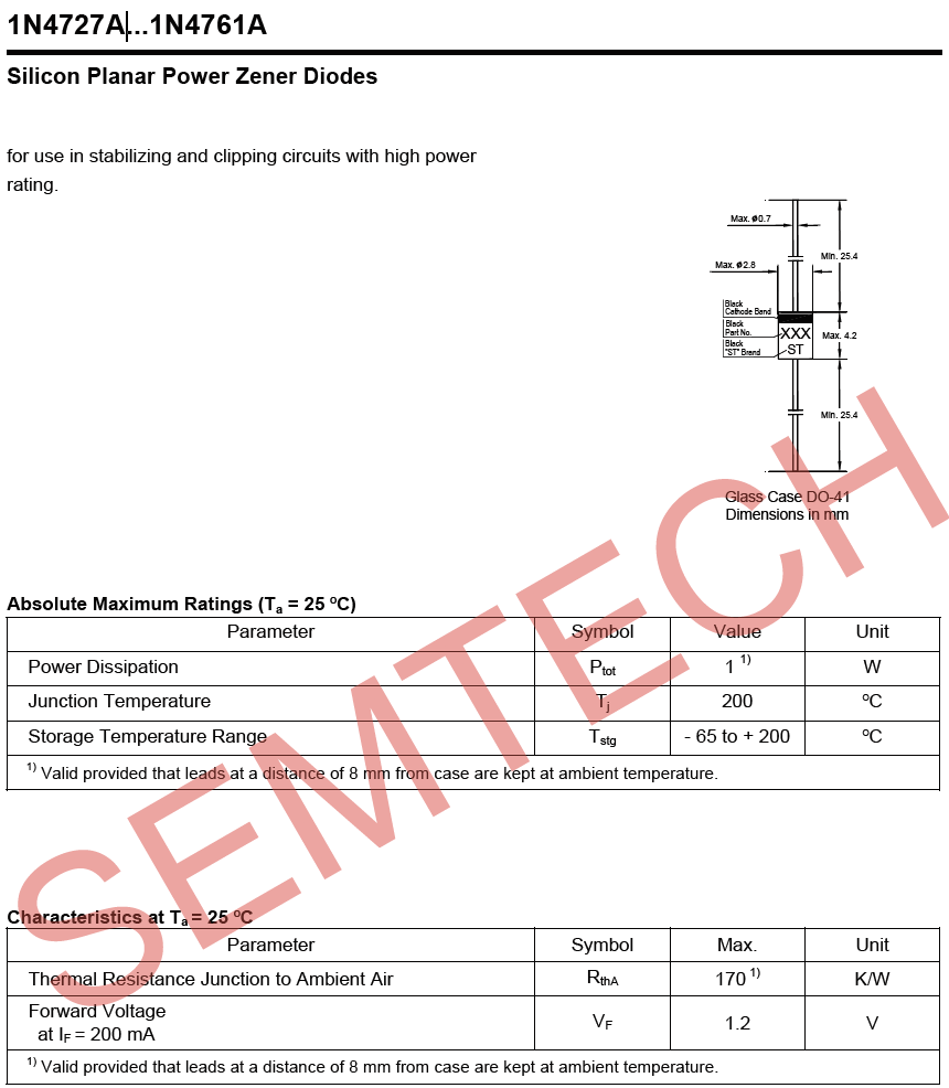 原廠先科ST插件穩(wěn)壓二極管 3V~75V 1W 玻璃封裝DO-41